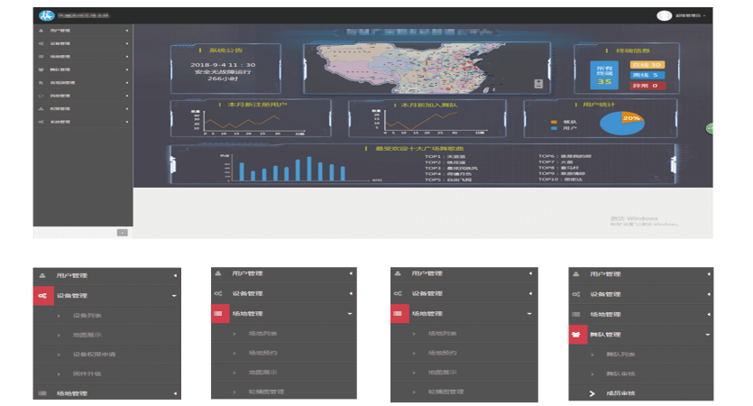 給管理員使用,掌握系統的核心控制權,如隊伍審核、隊伍管理、設備管理、場地管理等。管理員一般由社區、居委會、公園、相關主管部門等擔任。